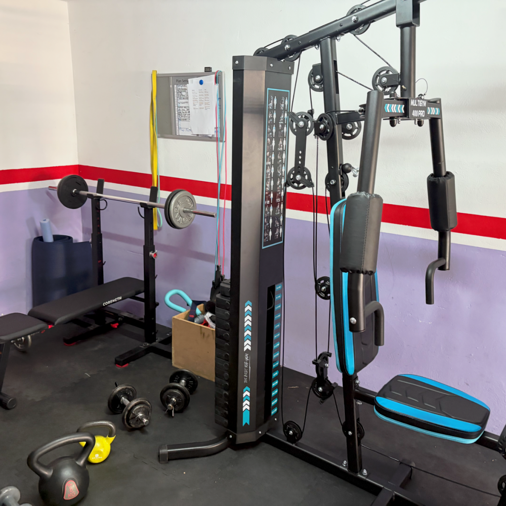 Equipado con cables resistentes que soportan altas cargas, el Multigym 400 PRO asegura la eficacia de cada ejercicio, permitiéndote entrenar con total confianza.